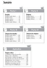 Parte I – Desafios: uma coletânea de questões onde são propostos desafios, charadas e problemas de lógica, classificados por níveis de dificuldade.